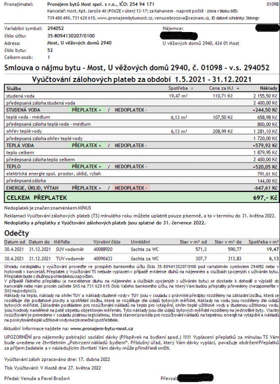 VYÚČTOVÁNÍ zálohových plateb